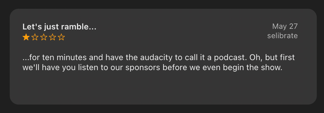 Sounds about right! FYI, selibrate, if you subscribe to our new Freekaconda tier on Patreon you can get ALL the rambling ad-free!