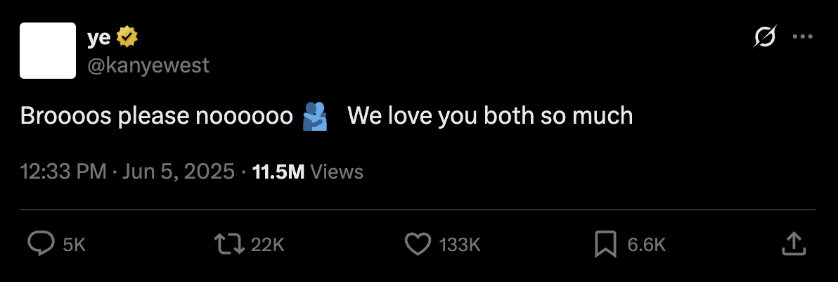 Well, it’s been an epic Pre-Taped Call-in Show week this week, with Lindy and Meagan “announcing” on Thursday’s podcast, which we taped last Thursday, the “huge news” that Elon has “left” the “federal government,” only to release said episode on the day that Elon and Trump went and obliterated all prior memories of them by getting into a flame war about who did the most (alleged) sex trafficking. Our bad! If you wanted to talk about Elon retiring from DOGE, you should have called in two weeks ago when our episode about Lindy’s milk frother was airing. But don’t worry, because we talked about mommy and daddy’s fight on today’s recording, which means you can hear our thoughts about it next Thursday, when the news cycle will no doubt have moved on and you will have no memory of this whatsoever: